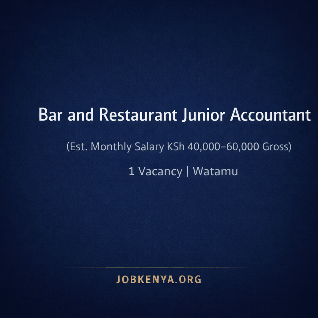 - Position Title: Bar and Restaurant Junior Accountant (Est. Monthly Salary KSh 40,000–60,000 Gross)
